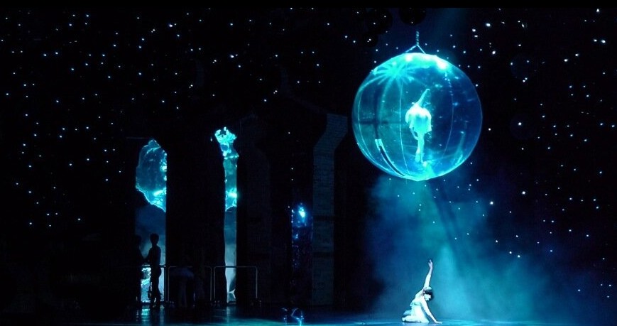 Задник сцены звездное небо, занавес для театра – эффектный фон, который акцентирует внимание зрителя на сцену еще до момента выступления артистов и достойно проявляет свои способности до окончания действий.