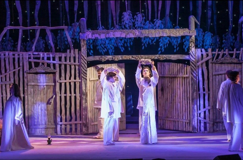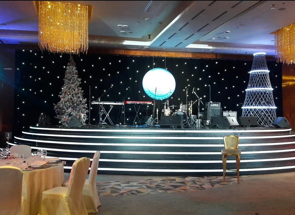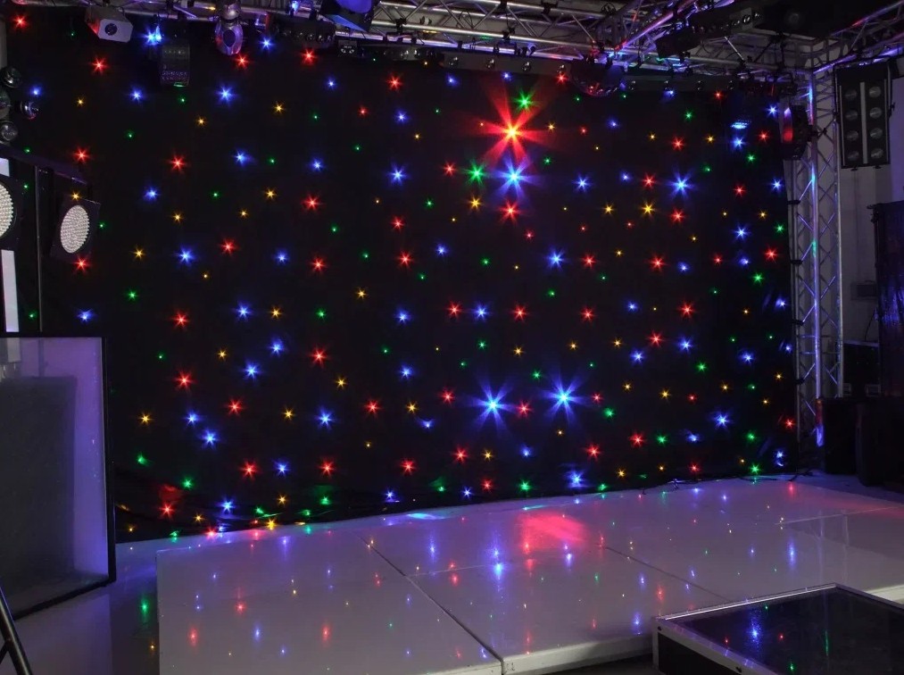 Задник сцены звездное небо, занавес для театра – эффектный фон, который акцентирует внимание зрителя на сцену еще до момента выступления артистов и достойно проявляет свои способности до окончания действий.